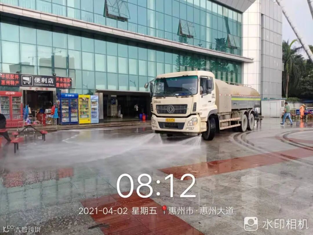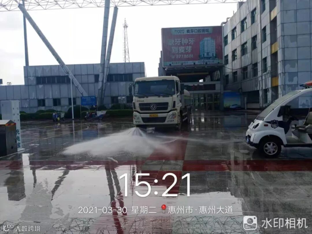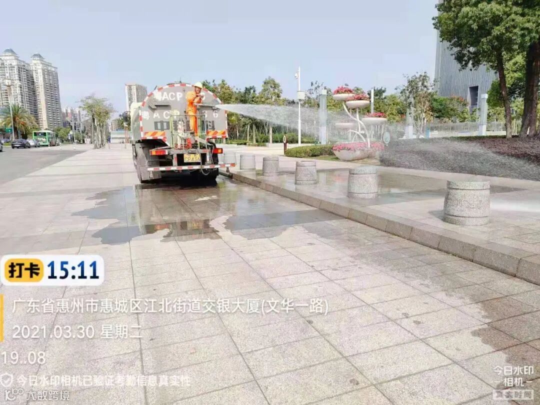 加强市政府/城管局周边、惠州大道江北段至火车站及中山公园附近人行道冲洗