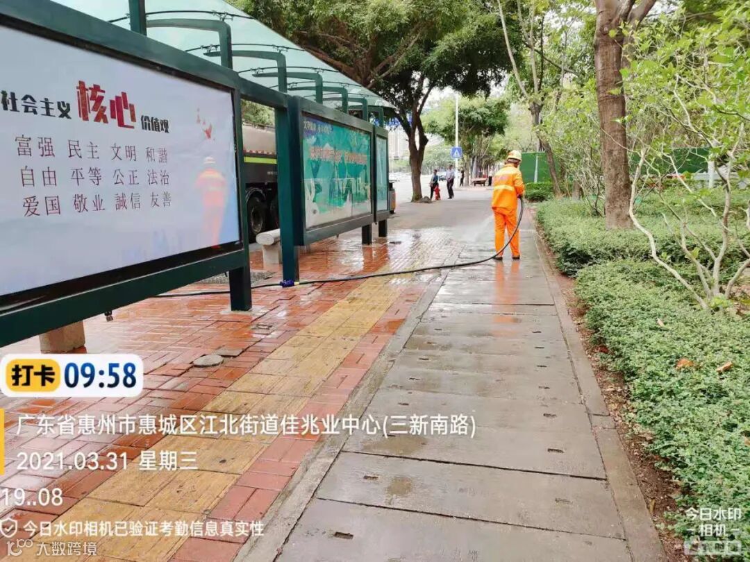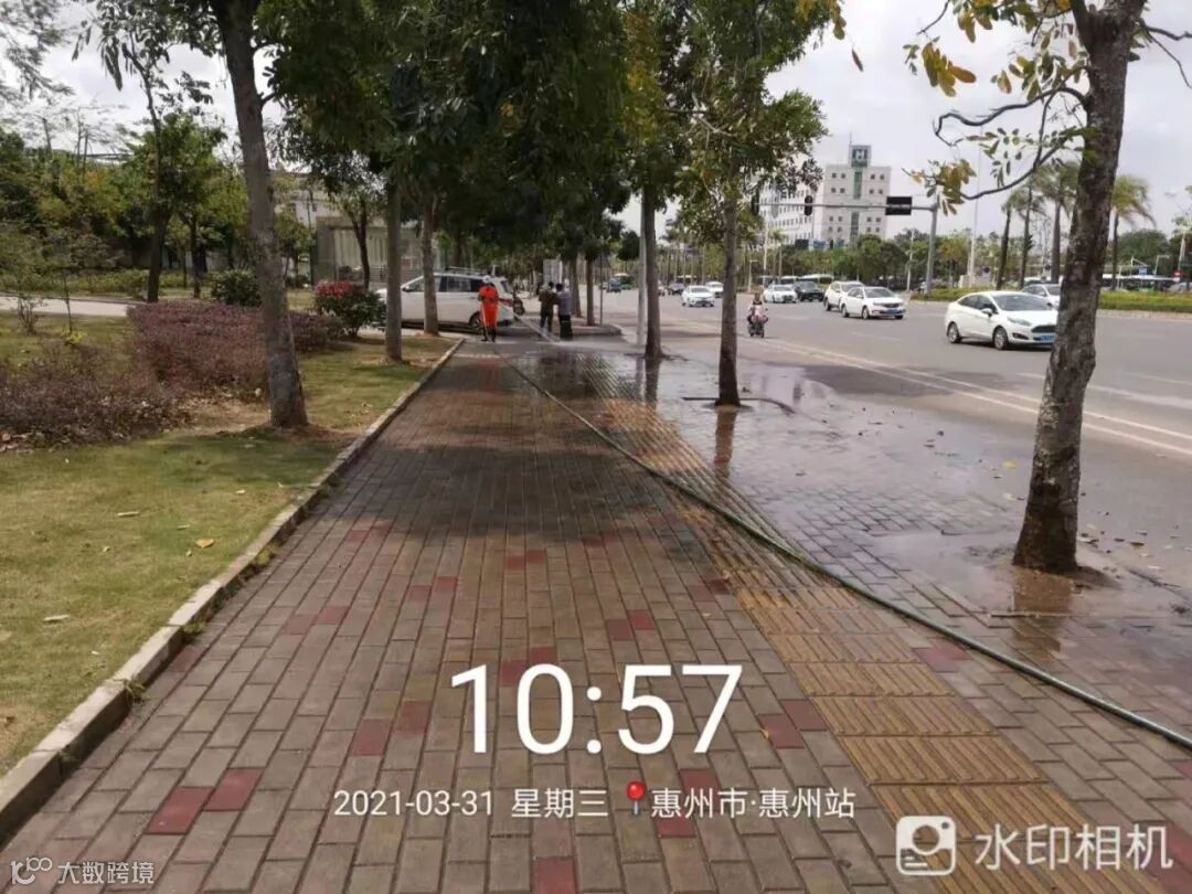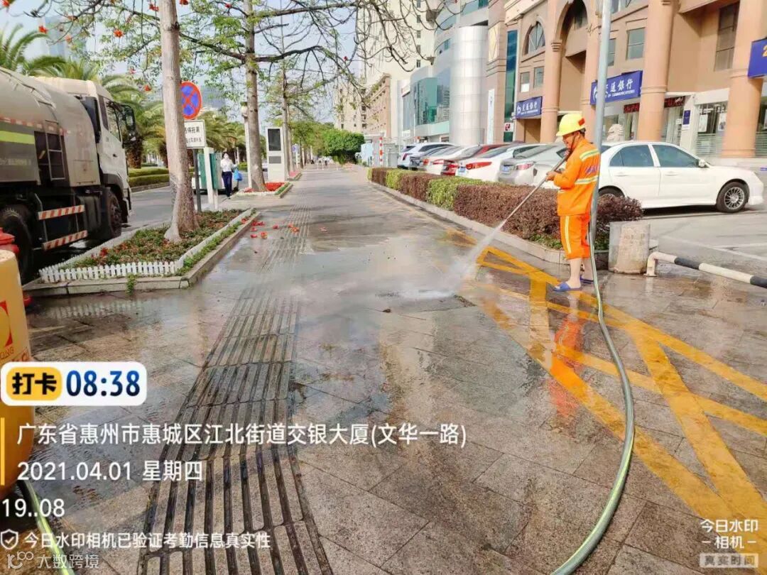 2、重点加强市政府/城管局周边、惠州大道江北段至火车站及中山公园附近人行道冲洗至见本色;