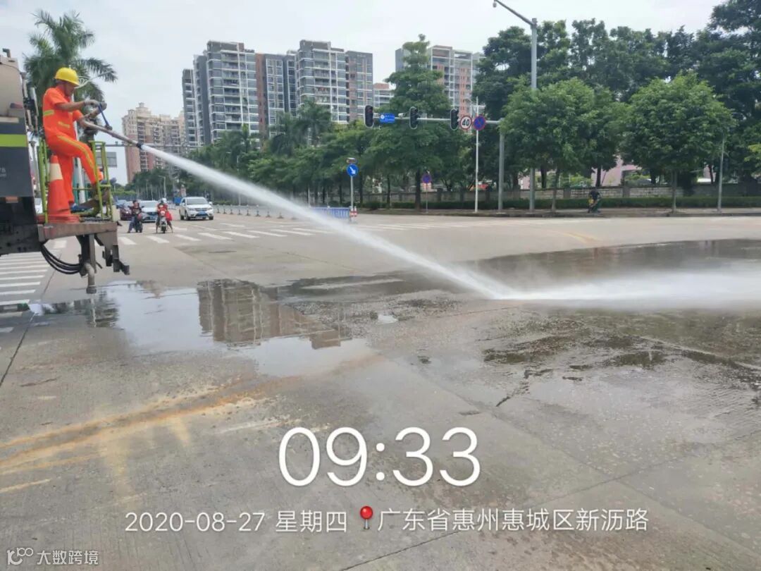 3、机械化加强泥沙污染路段清扫及冲洗力度,雾炮车沿主干道洒水喷雾作业,减轻高温轻度污染天气;
