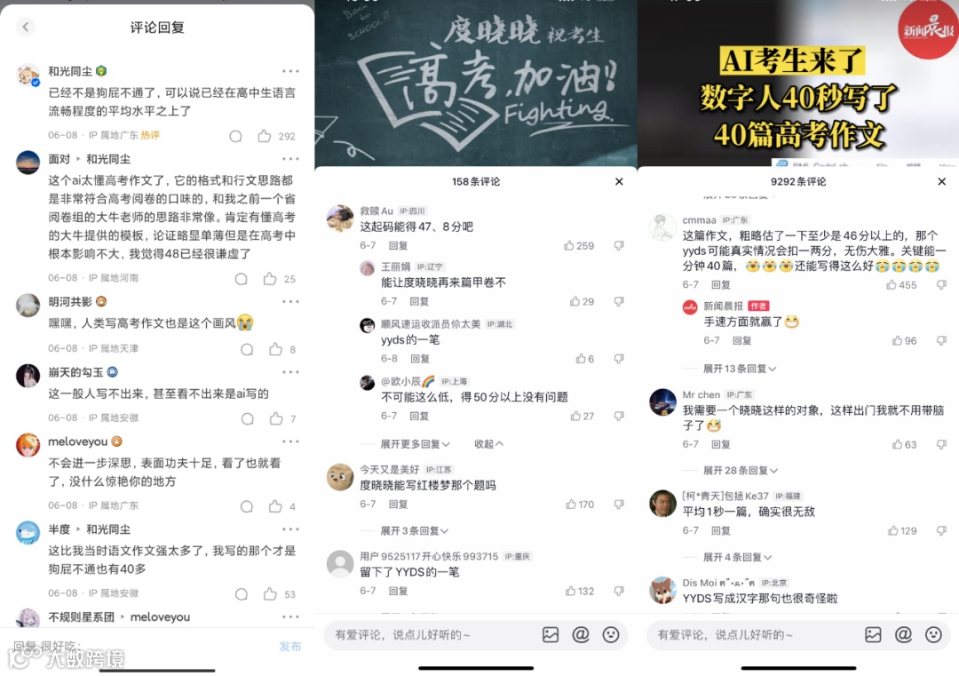 今年高考期间,一则AI数字人写高考作文的话题就悄悄爬上热搜。由百度推出的数字人度晓晓,作答了全国新高考Ⅰ卷题为《本手、妙手、俗手》的议论文,曾担任北京高考语文阅卷组组长的申怡老师给出了48分的成绩。据介绍,根据历年情况,获得48分及以上作文成绩的考生,仅占不到25%,也就是说,度晓晓的作文分数已赶超约75%的高考考生。