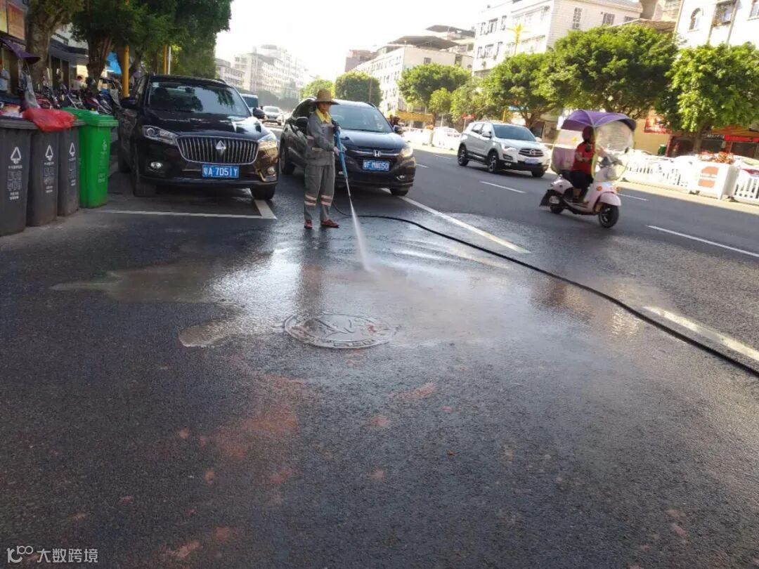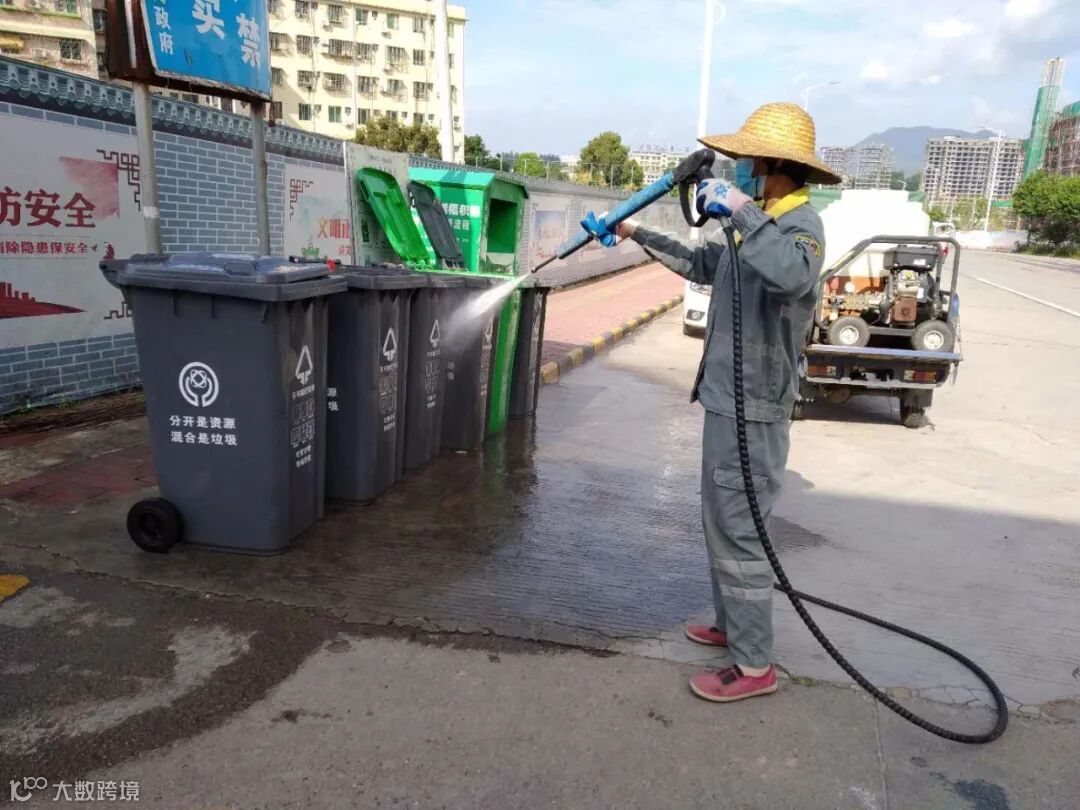 各辖区员工每天按正常作业,加强巡查清理卫生死角、大街小巷杂草、牛皮癣、乱张贴、乱涂写、乱拉挂、冲洗公厕、水域打捞、洒水车、清扫一体车按8小时作业冲洗清扫街道,两台高压冲洗机加强冲洗人行道、垃圾桶、县城10台垃圾清运桶装车,加县周边3台6吨压缩车按6班制加班加点轮回不停清运垃圾,各区负责人每天按正常加大力度巡查员工正常作业工作。