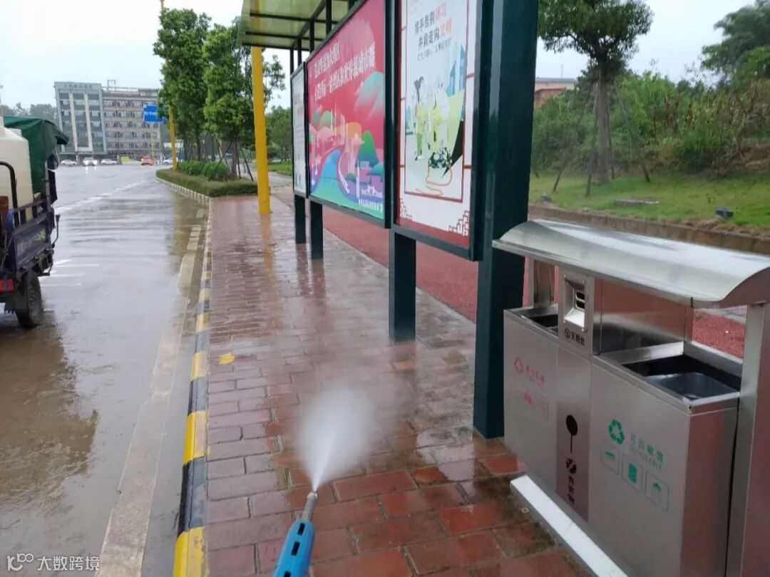 3、加强对城区环卫公共设施及护栏、人行道、路沿、候车亭的清洗。
