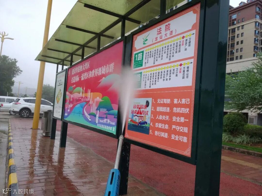 加强对城区环卫公共设施及护栏、人行道、路沿、候车亭的清洗。