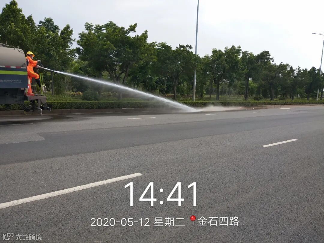 3、启动轻度污染天气预案,加强洒水和炮雾作业,洗扫车日间夜间常态作业;