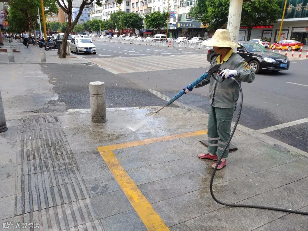 各辖区员工每天按正常作业,加强巡查清理卫生死角、大街小巷杂草、牛皮癣、乱张贴、乱涂写、乱拉挂、冲洗公厕、水域打捞、洒水车、清扫一体车按8小时作业冲洗清扫街道,两台高压冲洗机加强冲洗人行道、垃圾桶、县城10台垃圾清运桶装车,加县周边3台6吨压缩车按6班制加班加点轮回不停清运垃圾,各区负责人每天按正常加大力度巡查员工正常作业工作。