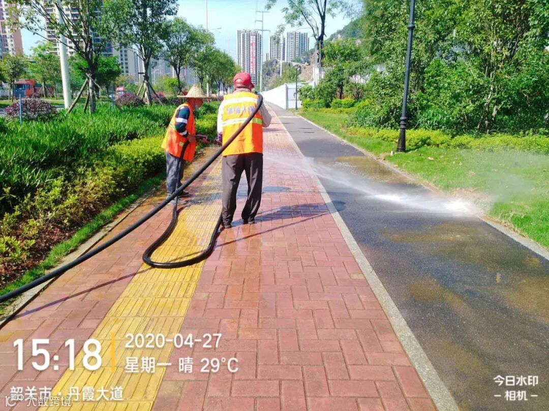 1、配合政府扬尘整治,加大冲水和喷雾力度;