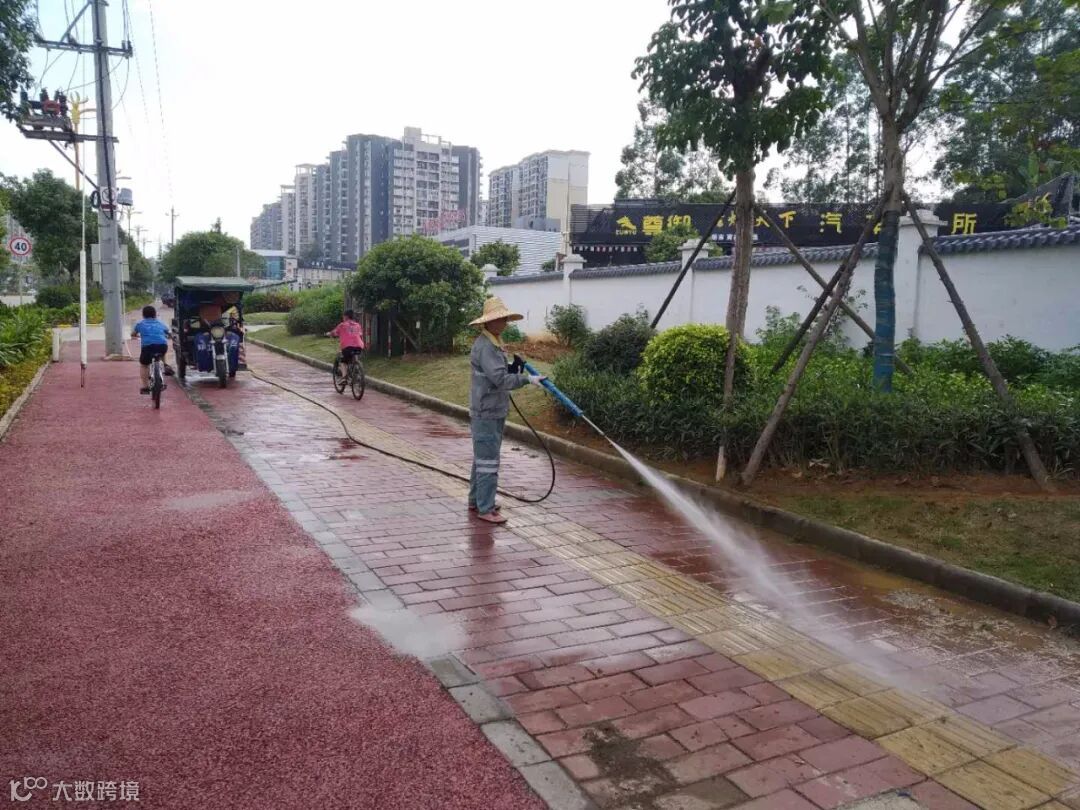 各辖区员工每天按正常作业,加强巡查清理卫生死角、大街小巷杂草、牛皮癣、乱张贴、乱涂写、乱拉挂、冲洗公厕、水域打捞、洒水车、清扫一体车按8小时作业冲洗清扫街道,两台高压冲洗机加强冲洗人行道、垃圾桶、县城10台垃圾清运桶装车,加县周边3台6吨压缩车按6班制加班加点轮回不停清运垃圾,各区负责人每天按正常加大力度巡查员工正常作业工作。