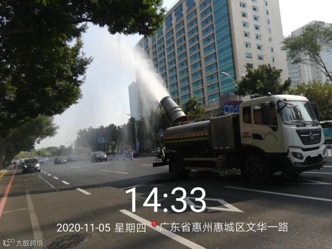 3、雾炮车加强国控站点及周边喷雾降尘作业,配合减轻臭氧空气污染,其他机械化保洁白天夜间持续清扫冲洗作业,加强泥沙污染路段冲洗及慢车道落叶清扫频次;