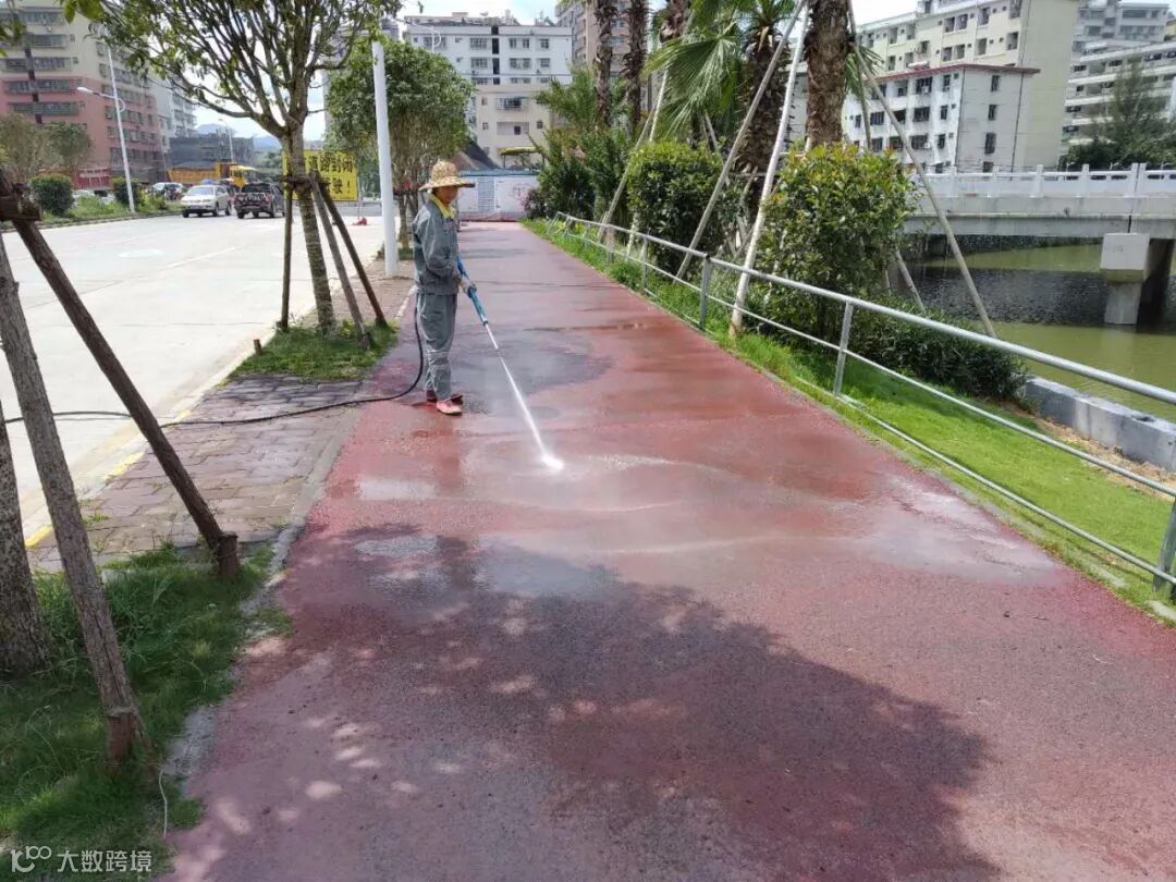 各辖区员工每天按正常作业,加强巡查清理卫生死角、大街小巷杂草、牛皮癣、乱张贴、乱涂写、乱拉挂、冲洗公厕、水域打捞、洒水车、清扫一体车按8小时作业冲洗清扫街道,两台高压冲洗机加强冲洗人行道、垃圾桶、县城10台垃圾清运桶装车,加县周边3台6吨压缩车按6班制加班加点轮回不停清运垃圾,各区负责人每天按正常加大力度巡查员工正常作业工作。