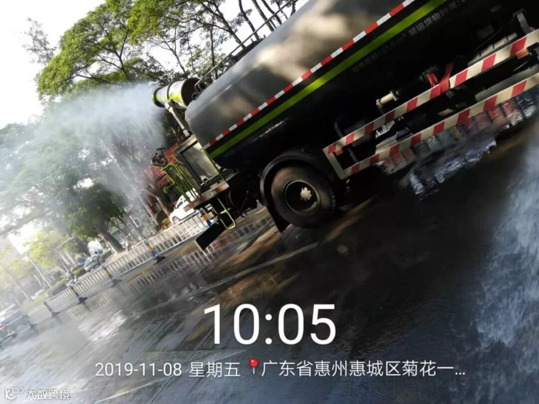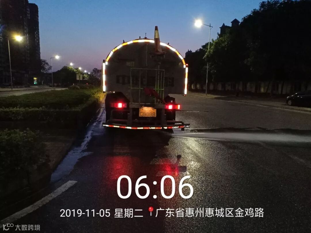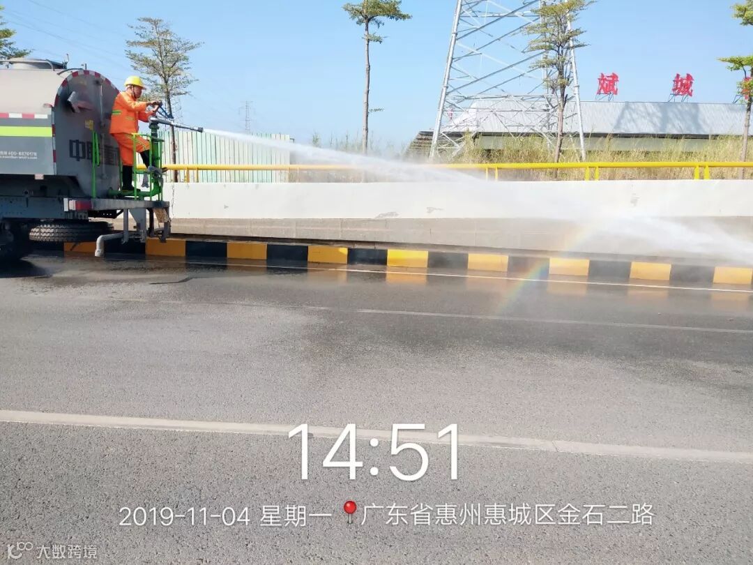 3、白天、夜间进行道路清扫、洒水,高压冲洗停车场垃圾点、云山东路、三新南路、惠博大道、菊花一路,新沥路,高速公路出入口等路段;人行道冲洗,加强喷雾降尘作业,应对轻度污染天气;垃圾车正常作业清运垃圾;