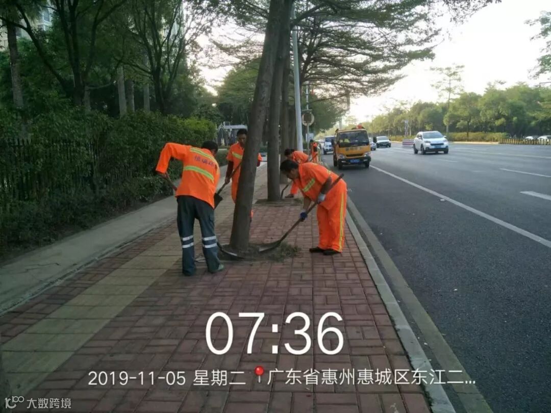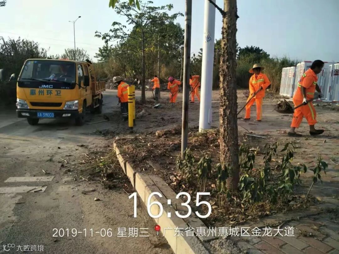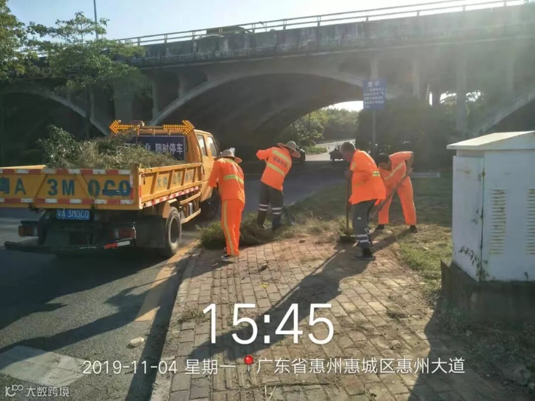 2、常态化保洁各大街小巷,机动化保洁清理东江一路、惠州大道等路段杂草、泥沙;