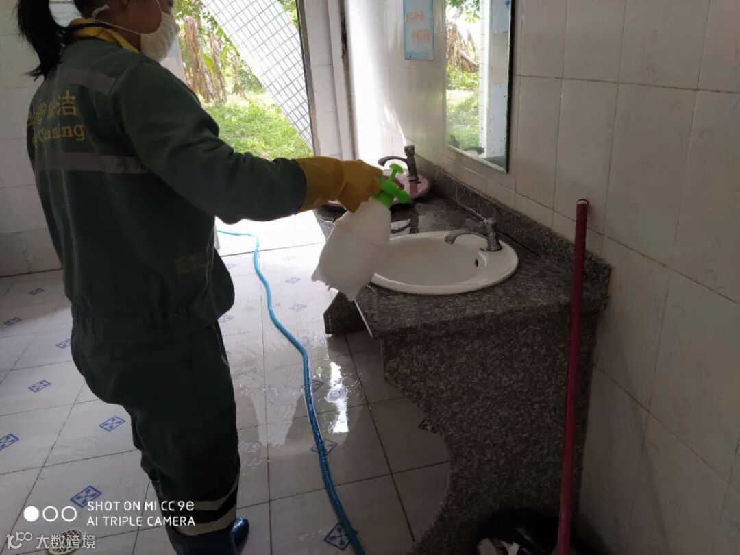 保证正常作业的同时,还对县区公共场所和环卫公共设施、公厕等进行每天2次的清洗、消毒,雨后积存淤泥清理、冲洗。