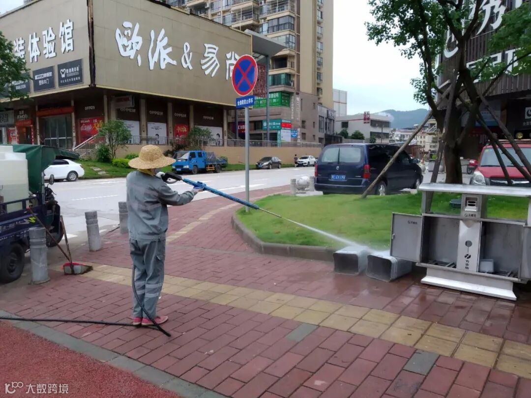 3、保证正常作业的同时,还对县区公共场所和环卫公共设施、公厕等进行每天2次的清洗、消毒,暴雨后积存淤泥清理、冲洗。