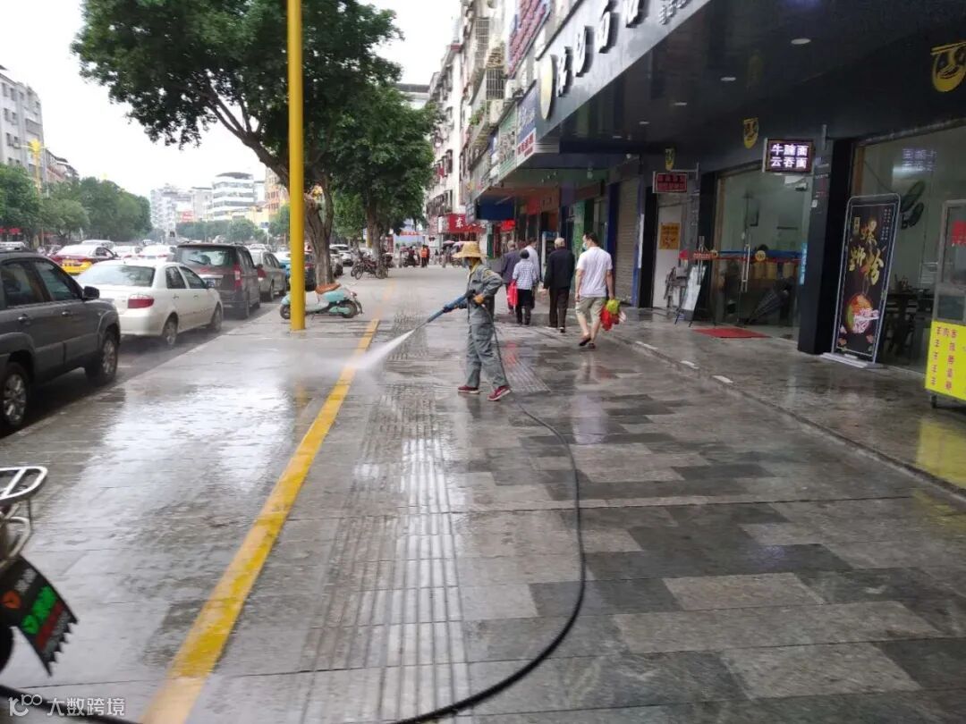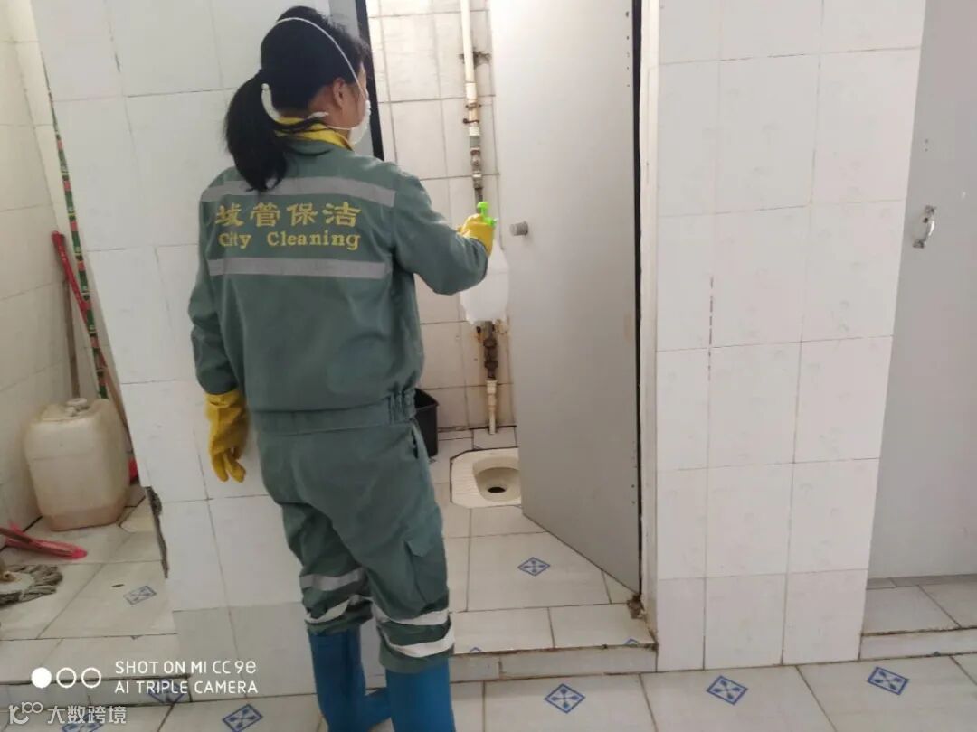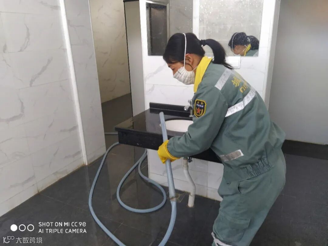 每天2次利用高压机全面对县区公共场所和环卫公共设施清洗、消毒,专人对公厕消毒等方式坚持做好防疫工作。