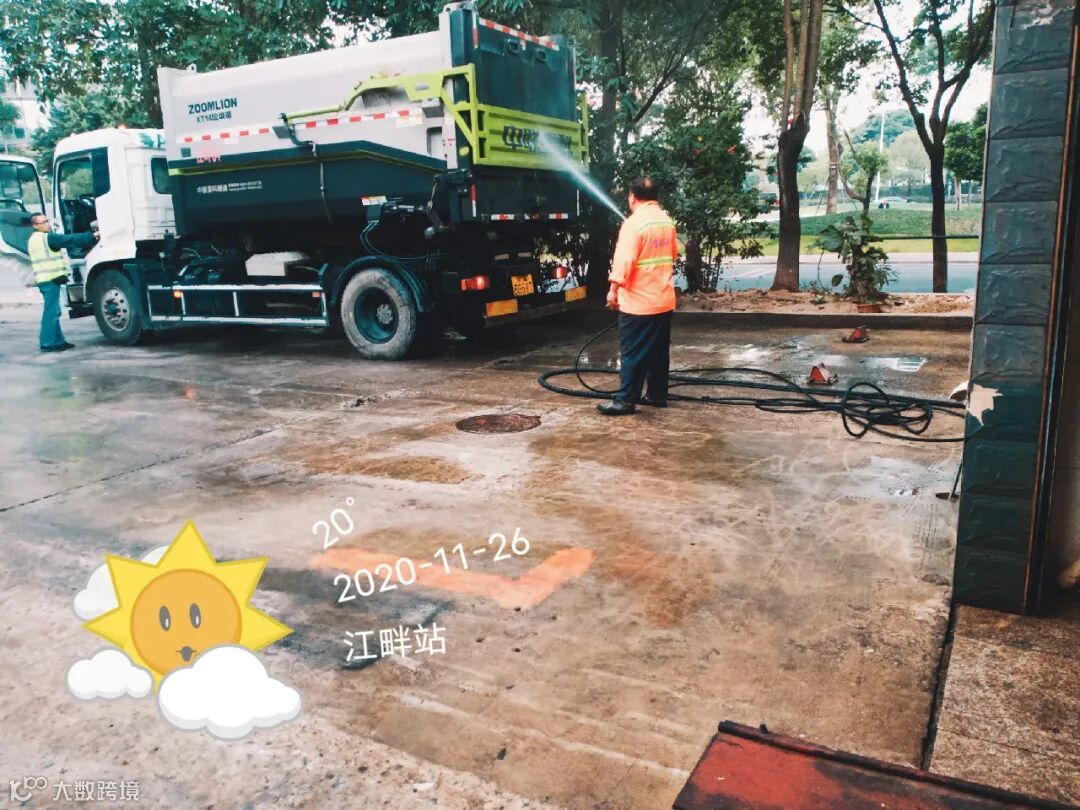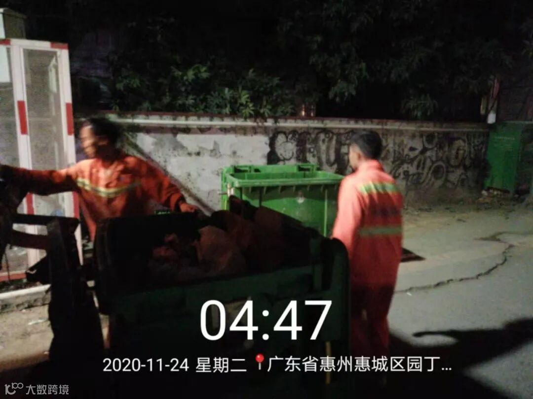 (各垃圾桶点垃圾及时收运吊装,并清扫现场)