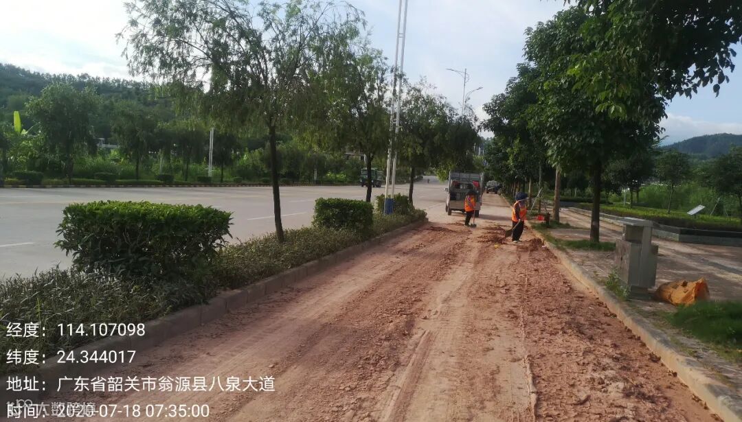 2、清理八泉大道高速出口工地车辆带出大量泥土。