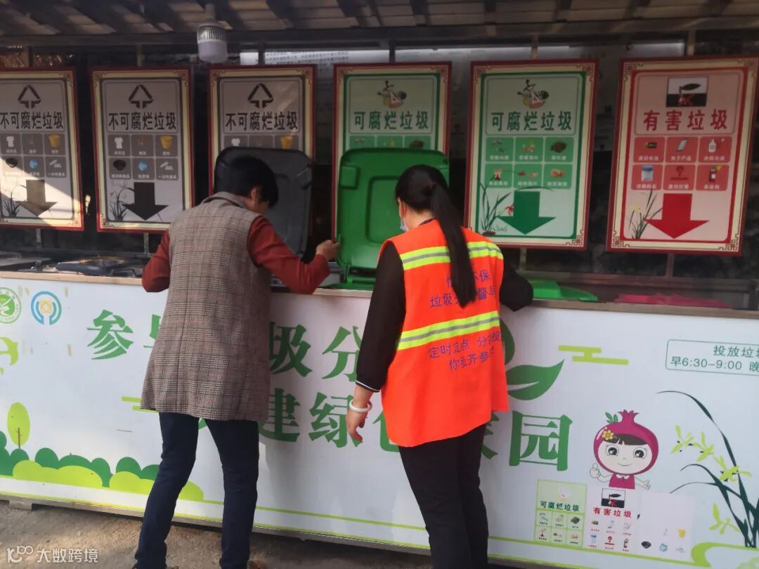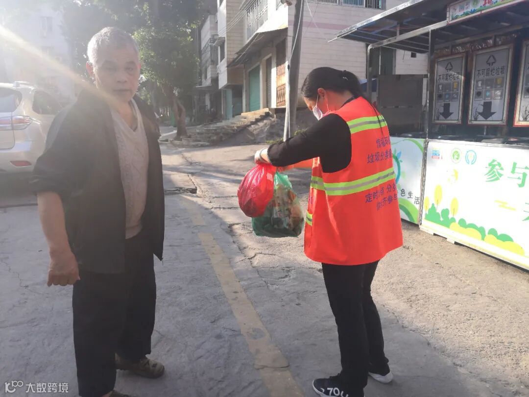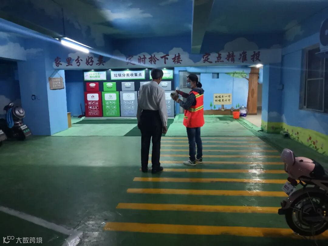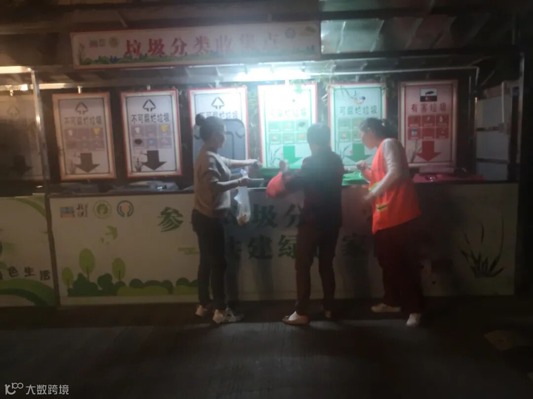 2、分类劝导组与万家顺超市沟通垃圾干湿分离及收运,在各试点小区守点宣传及破袋。