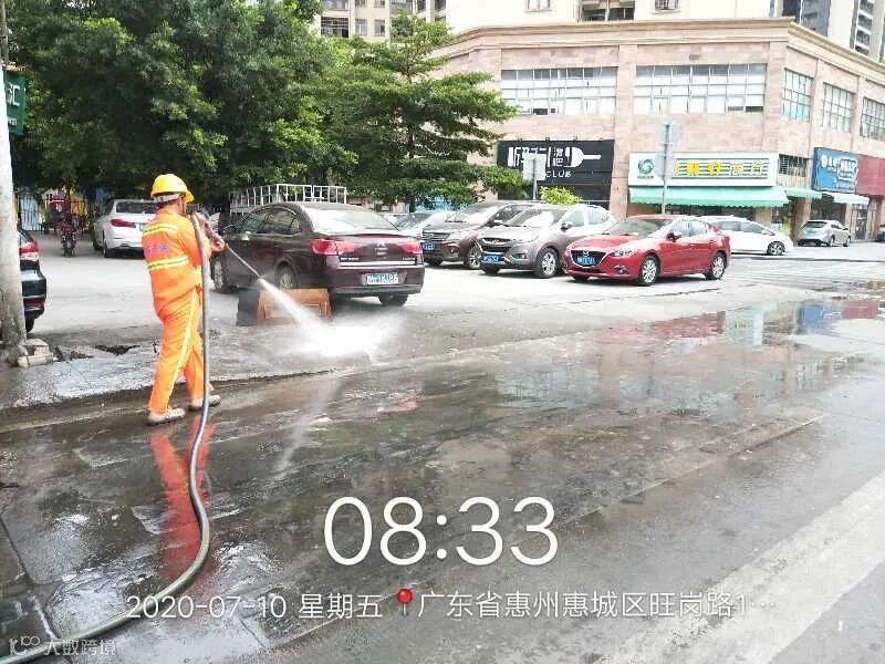 (冲洗惠州大道汤泉段慢车泥沙污染)