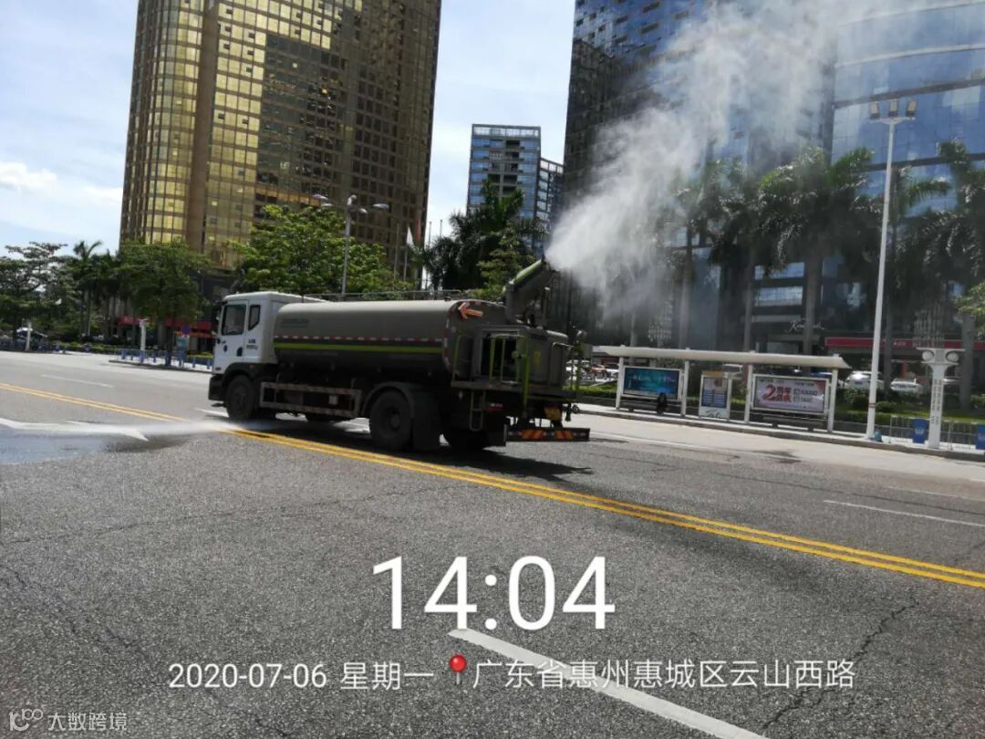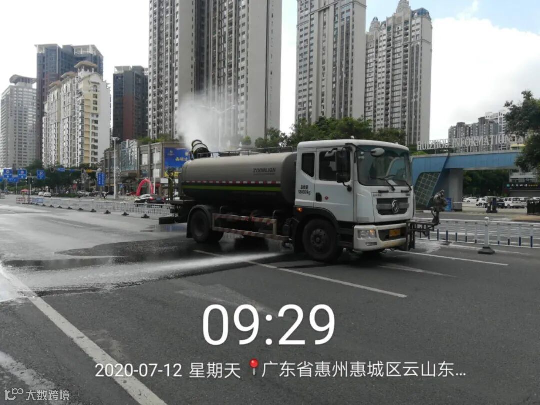 2、雾炮洒水车加强喷雾洒水降尘作业,洗扫车加大道路冲洗和洒水力度,力争最大程度减少马路浮土扬尘;