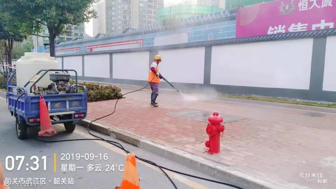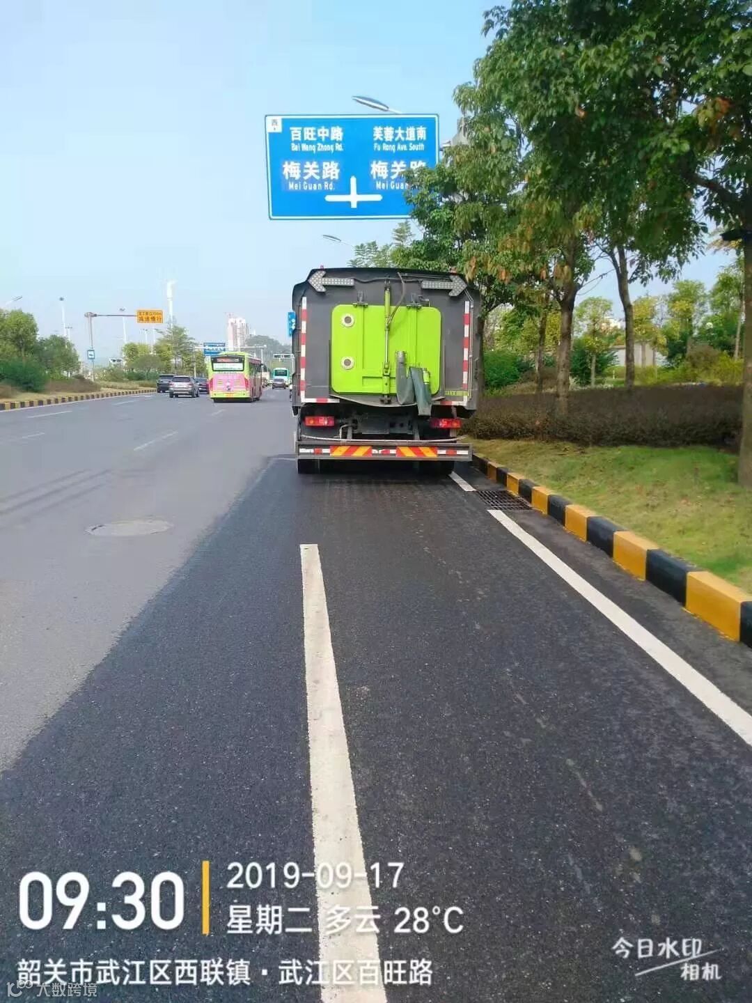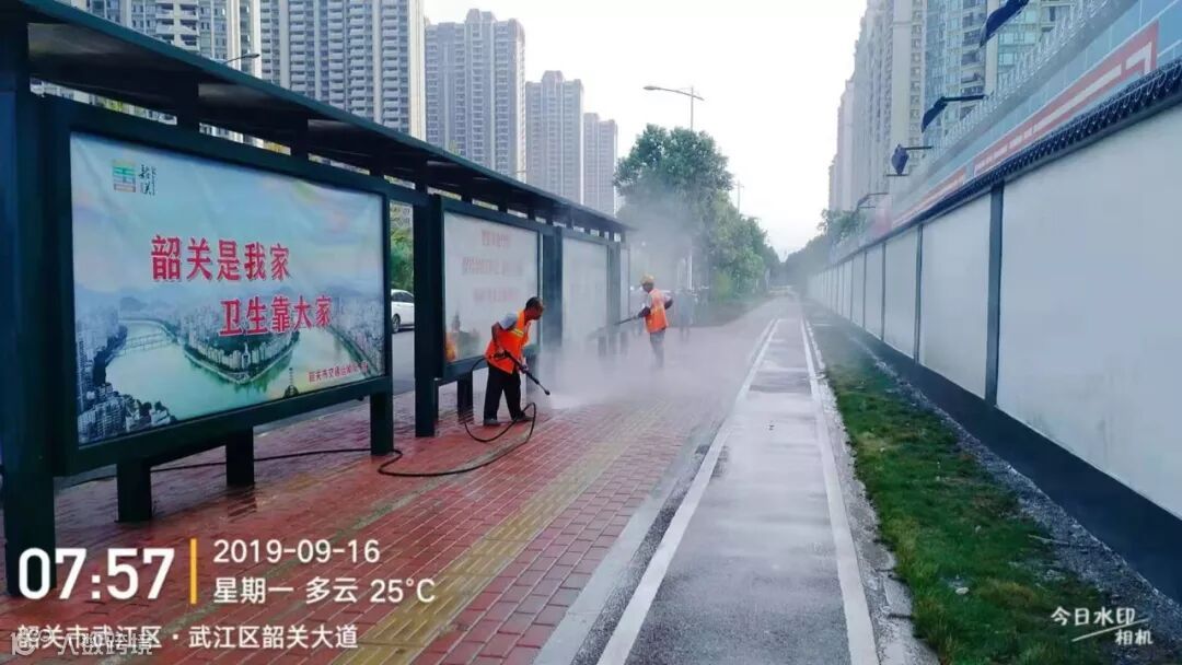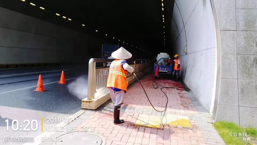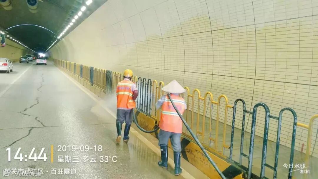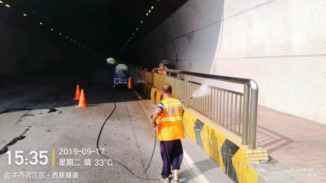 这周派出高压清洗机队伍39车次,125人员高压冲洗百旺大道,人行道、公交车站台,百旺隧道,人行道、侧石、围栏。