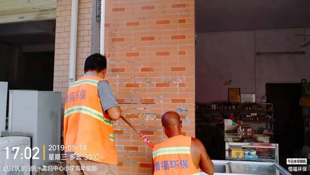 4、 加强清理上庙背村,沐溪大道牛皮癣小广告,大街小巷卫生死角。