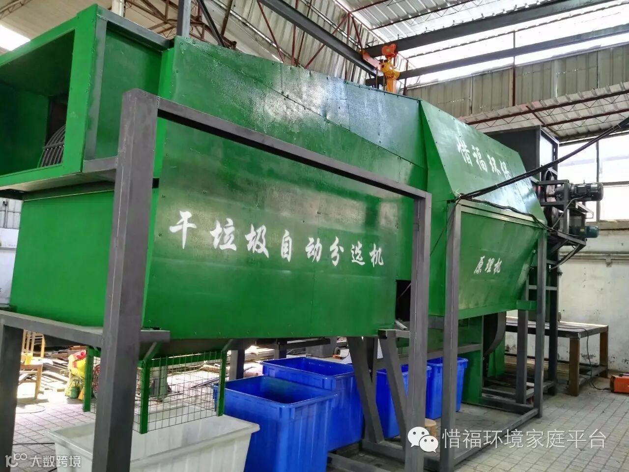 惜福环保干垃圾自动分选系统是建立在惜福环保“环卫服务、垃圾处理、再生资源回收利用一体运营”模式基础上,在充分发动居民生活垃圾源头干、湿分类的前提下,对居民源头分出的干垃圾进行机械化自动分选。首先将60%以上未被污染的可回收资源抢救性分离出来,并分成4类。没有回收价值的垃圾分成可焚烧发电垃圾(约占25%)和惰性填理垃圾(约占15%)两类。与之前惜福环保成功研发并运行的餐厨垃圾好氧堆肥设备,及正在研发的已污染塑料、泡沫类生物清洁技术、路面清扫垃圾自动分选设备一起,形成惜福环保生活垃圾资源产业化开发成套技术设备,能将生活垃圾减量90%以上。