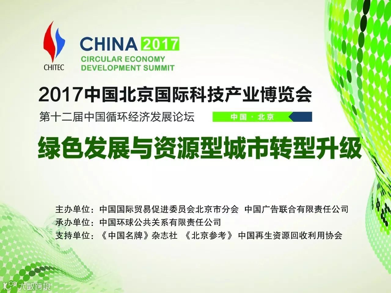 据悉,“2017中国北京国际科技产业博览会• 第十二届中国循环经济发展论坛”由北京国际科技产业博览会组委会办公室指导,中国国际贸易促进委员会北京市分会、新华社中国广告联合有限责任公司主办,本届论坛的主题为“绿色发展与资源型城市转型升级”。