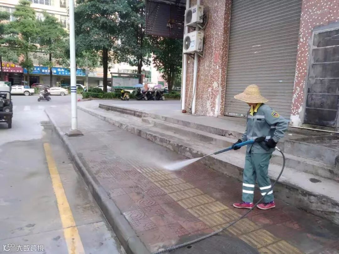 各辖区员工每天按正常作业,加强巡查清理卫生死角、大街小巷杂草、牛皮癣、乱张贴、乱涂写、乱拉挂、冲洗公厕、洒水车按8小时作业冲洗街道,两台高压冲洗机按加强冲洗人行道、垃圾桶、县城12台垃圾清运桶装车按4班制轮回不停清运垃圾,各区负责人每天按正常巡查员工正常作业工作。