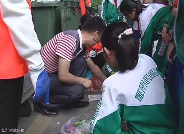 在专业人员的指导下,学生们运用所学的知识进行垃圾分类的现场亲身体验。