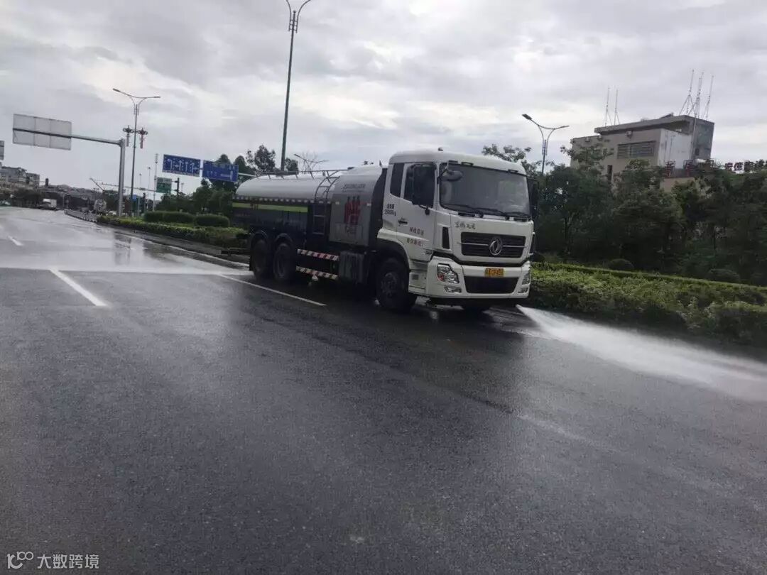 道路冲洗车在作业。 惠州日报记者马海菊 摄