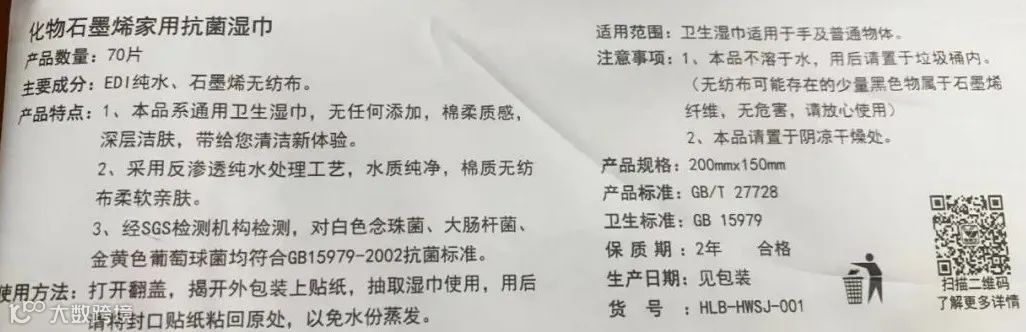 化物石墨烯抗菌湿巾