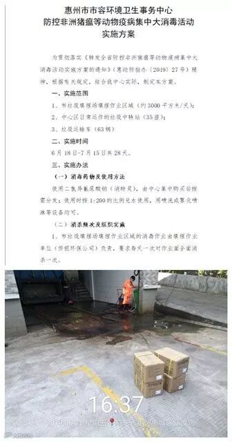 5、防控非洲猪瘟等动物疫病集中大消毒活动实施,中转站及垃圾运输车辆进行全面清洗、消毒;