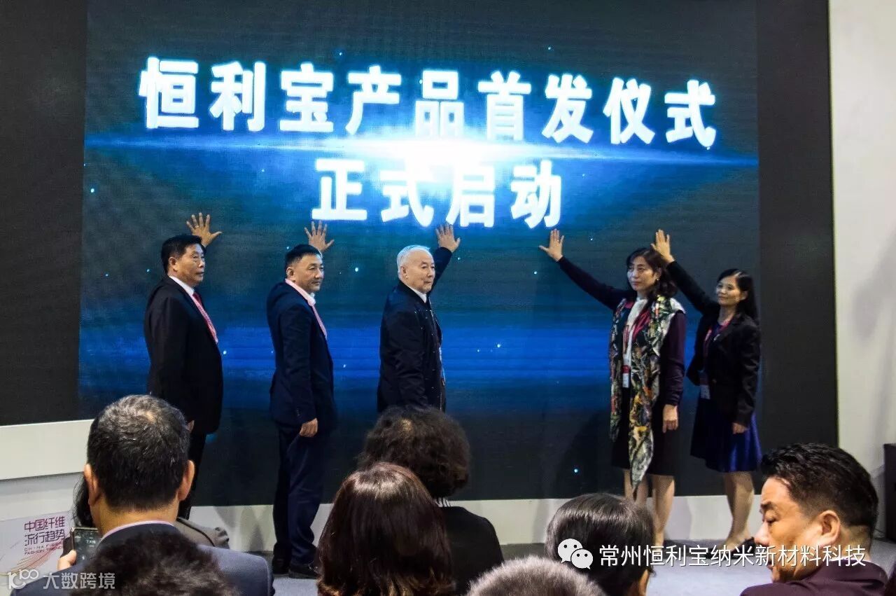 10月12日,由中国化学纤维工业协会与常州恒利宝纳米新材料科技有限公司联合举办的恒利宝“风定云墨”石墨烯原位聚合锦纶产品发布会在沪举行。中国工程院院士蒋士成,中国化学纤维工业协会副会长贺燕丽、王玉萍,中国印染行业协会秘书长林琳,苏中石墨烯新材料产业联盟会长邓锦高,常州恒利宝纳米新材料科技有限公司董事长、总经理蒋焱等专家领导出席发布会。