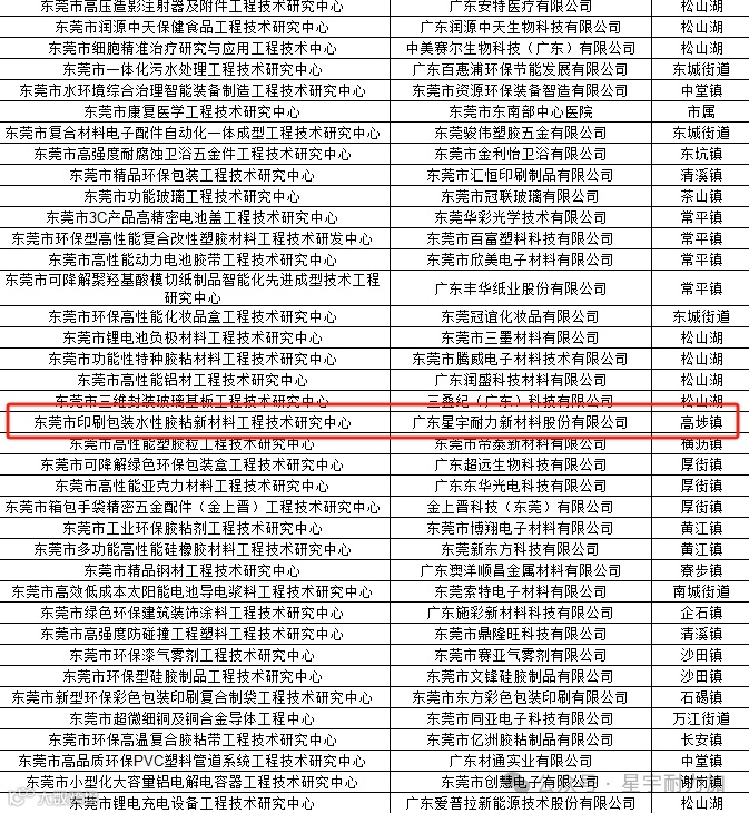 近日,我司成功获得东莞市工程技术研究中心的认定,这是对我们研发实力和技术创新能力的高度肯定!此次认定标志着星宇耐力在新材料领域迈向了一个新高度,为科技创新和产业发展注入了强劲动力。