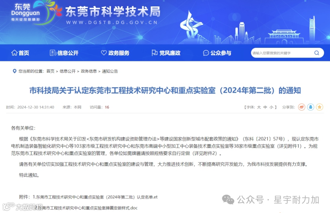 星宇耐力加喜讯传来!广东星宇耐力新材料股份有限公司荣获市科技局认可!