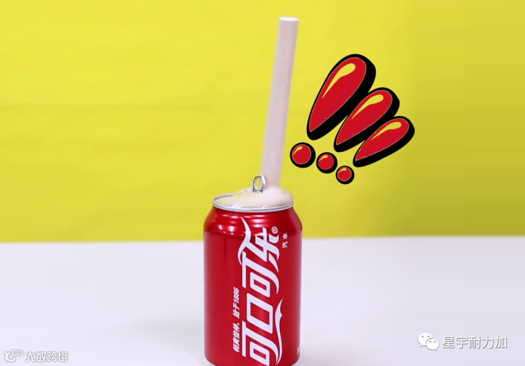 纸吸管插入可乐后,产生毛细现象。可乐气泡的密度很小,少量的气泡产生即可造成瓶内可乐液面高度明显提升,当提升高度高于纸吸管在液面以上的长度部分时,泡沫会大量从吸管内涌出;