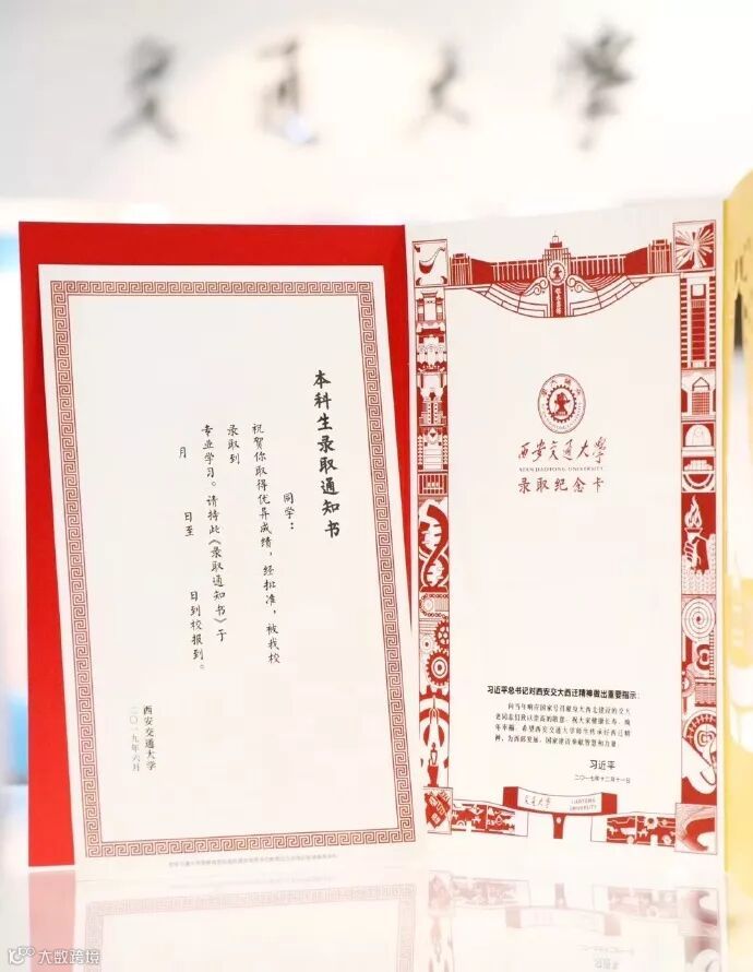 西安交通大学今年的录取通知书