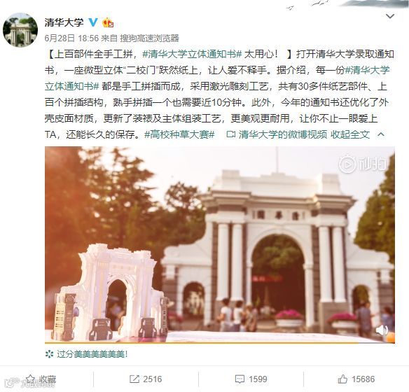 去年清华的立体通知书