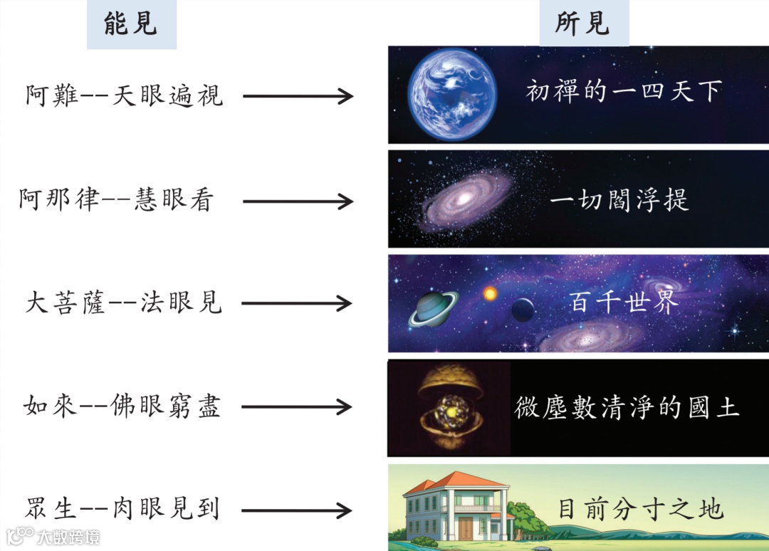 罗汉,只证到初果,没有证到无漏清净的那种程度,但是你能够承蒙佛陀的大神威力加持,你的眼根产生见的功能,可以看到初禅天,在初禅的境界当中的种种物质,都能够了了分明而无所障碍(佛拿看东西这种情形来说明一个问题,那就是境界不同所看到的范围也不尽相同)。
