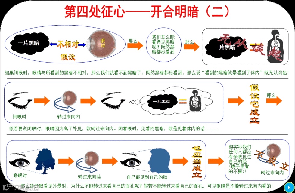 综合上述八点理由,你说闭上眼睛,看见暗昧的景象,就叫做见内,根本是错误的。
