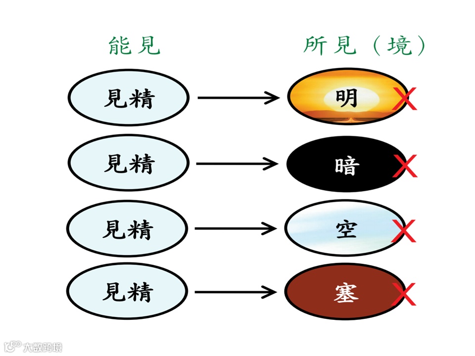 如此光明跟黑暗互相侵夺,相互作用,而现出有“明来暗去”、“暗来明往”之相,如此则是外尘在来与去,不是你的见性于明暗中暂有暂无。见性的体性永远存在,只是它随顺光明的因缘见到光明,随顺黑暗的因缘见到黑暗。由此可知,不管是光明跟黑暗,见性都是恒常存在的,都应该叫做见,怎么能够说见暗之时就是不见呢?