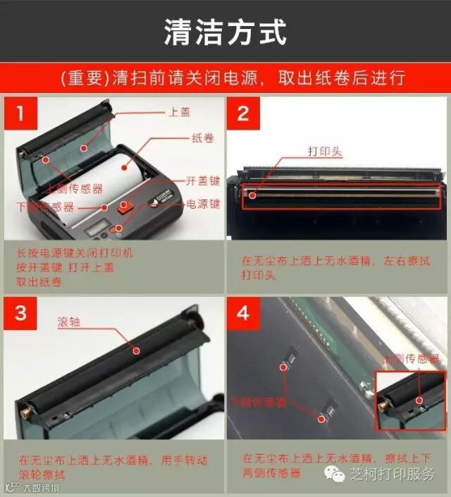 ② 清洁打印机内部滚轮(棉签蘸酒精擦拭)