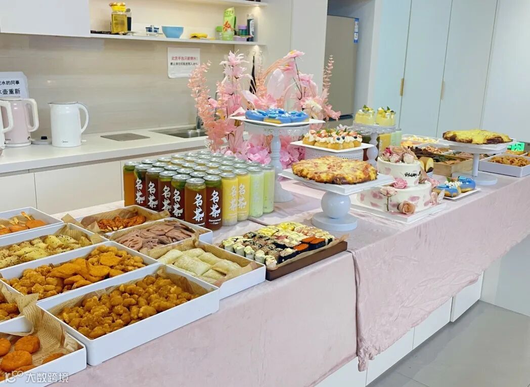 美食美景,尽享惬意。在舒适的环境中,同事们畅聊生活,共同品尝精致的甜品、新鲜的水果、醇香的饮品等,共享快乐。