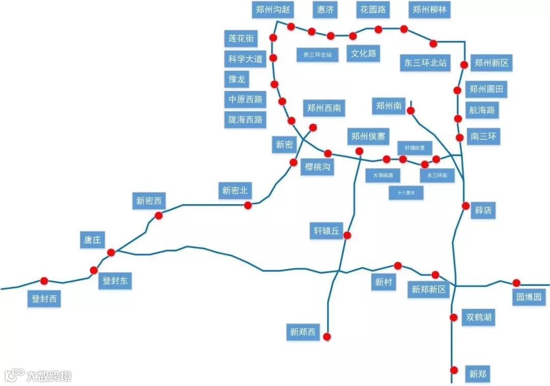郑州沟赵、惠济、西三环北站、文化路、花园路、郑州柳林、东三环北站、郑州新区、郑州圃田、航海路、南三环、东三环南、轩辕故里、十八里河、大学南路、郑州侯寨、樱桃沟、陇海西路、中原西路、豫龙、科学大道、莲花街