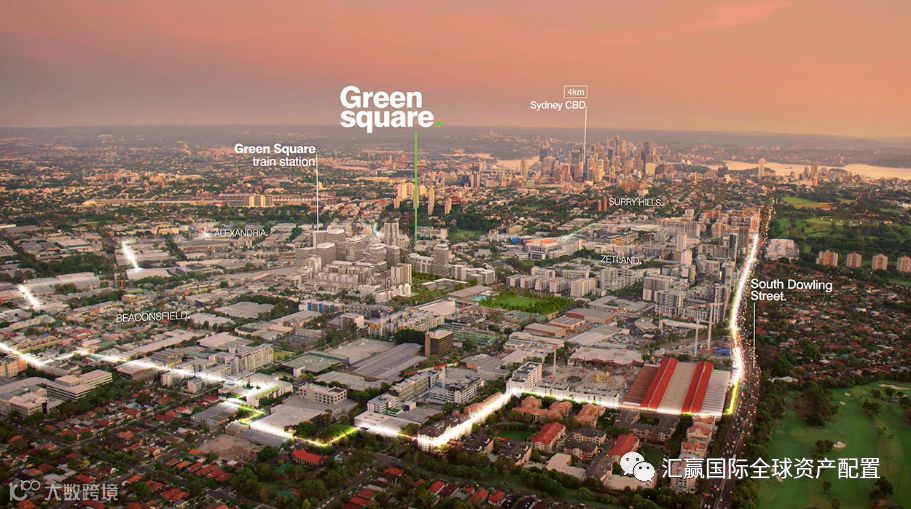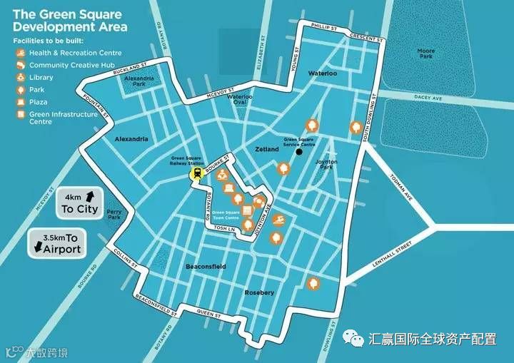 Green Square 开发区包含了Waterloo, Zetland,Alexandria, Rosebery 和部分Beaconsfield。