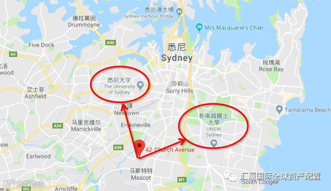 Mascot 位于悉尼CBD以南5.5公里处,悉尼国际机场东边,楼下即有: