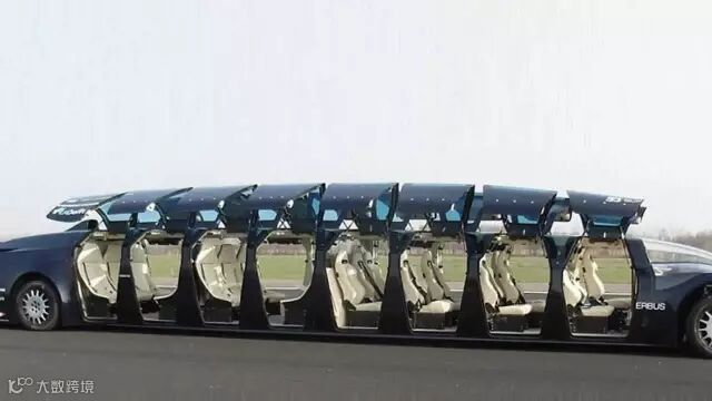 该车长15M,宽1.65M,高2M,共拥有16扇车门,全部为鸥翼门造型,当车门全部打开的时候整车犹如一条准备腾飞的巨龙,霸气侧漏。