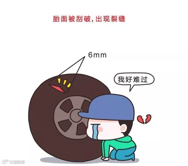 轮胎胎面受到尖锐物体刮蹭,缝隙超过6mm