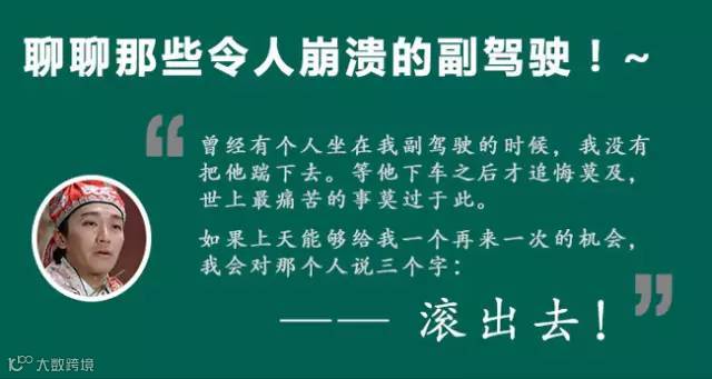 国内的媒体做了调查,发现很多人都不仅认同了这一说法,而且还有很多的补充。比如,有些人会在你的旁边指指点点,有些人会在你旁边喋喋不休,还有些人会在你旁边大睡特睡,更有些人大吃特吃……今儿我们来聊聊那些,曾经让你内心崩溃的副驾驶!