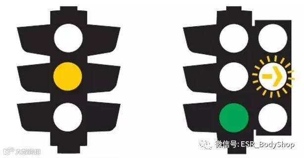 在到达停靠线前遇到黄灯或黄色箭头,必须停车,除非停车不安全。